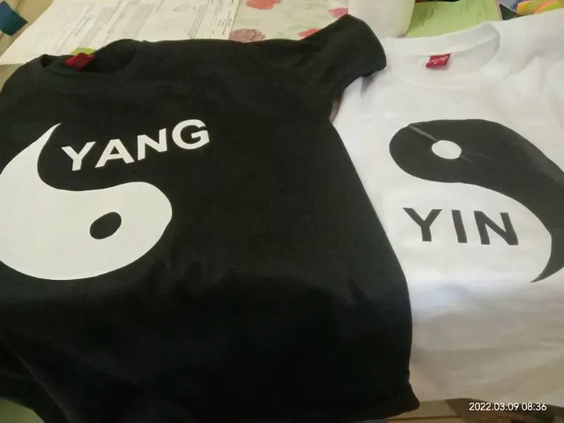 A stylish matching t-shirt set featuring the classic Yin and Yang design—perfect for couples who balance and complete each other.