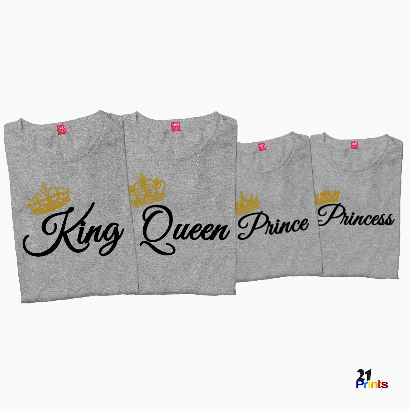 A matching royal family shirt set featuring elegant crown designs and “King, Queen, Prince, Princess” prints—perfect for stylish family bonding, photos, and special occasions.