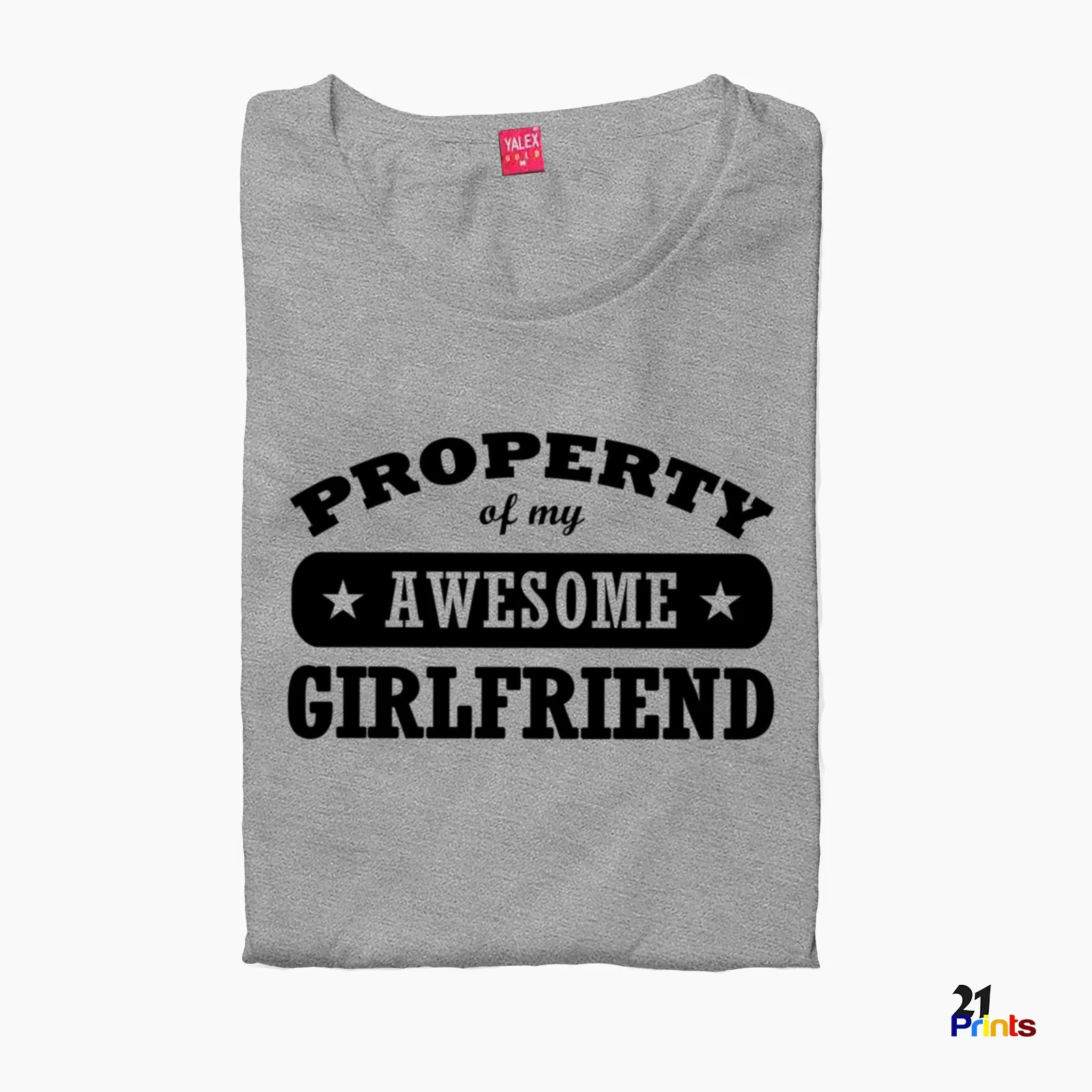 A fun and bold matching t-shirt set for couples, featuring playful “Property of My Awesome Boyfriend/Girlfriend” prints.