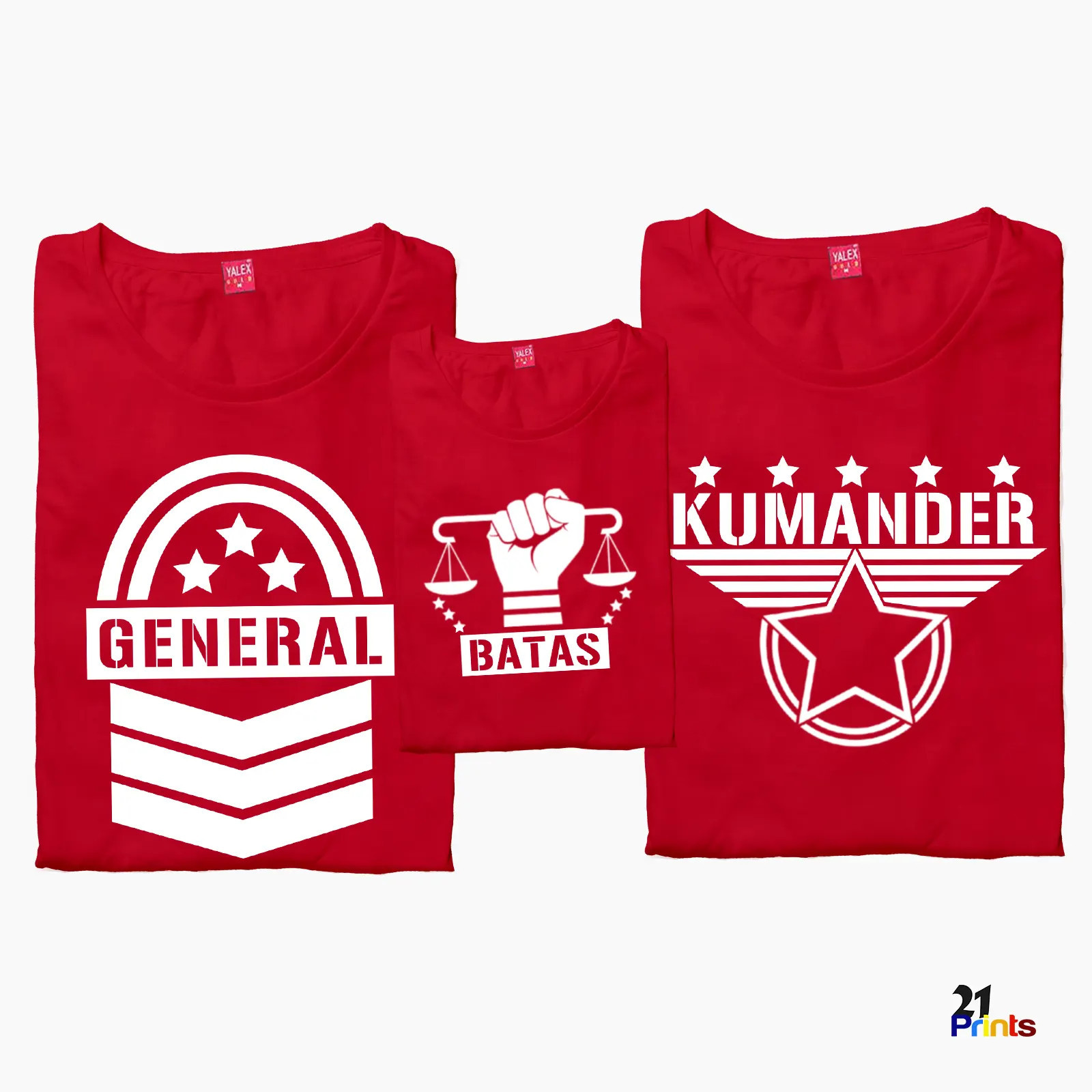 A bold matching family shirt set featuring “General,” “Kumander,” and “Batas” designs—perfect for strong, united families who lead with love, authority, and respect.