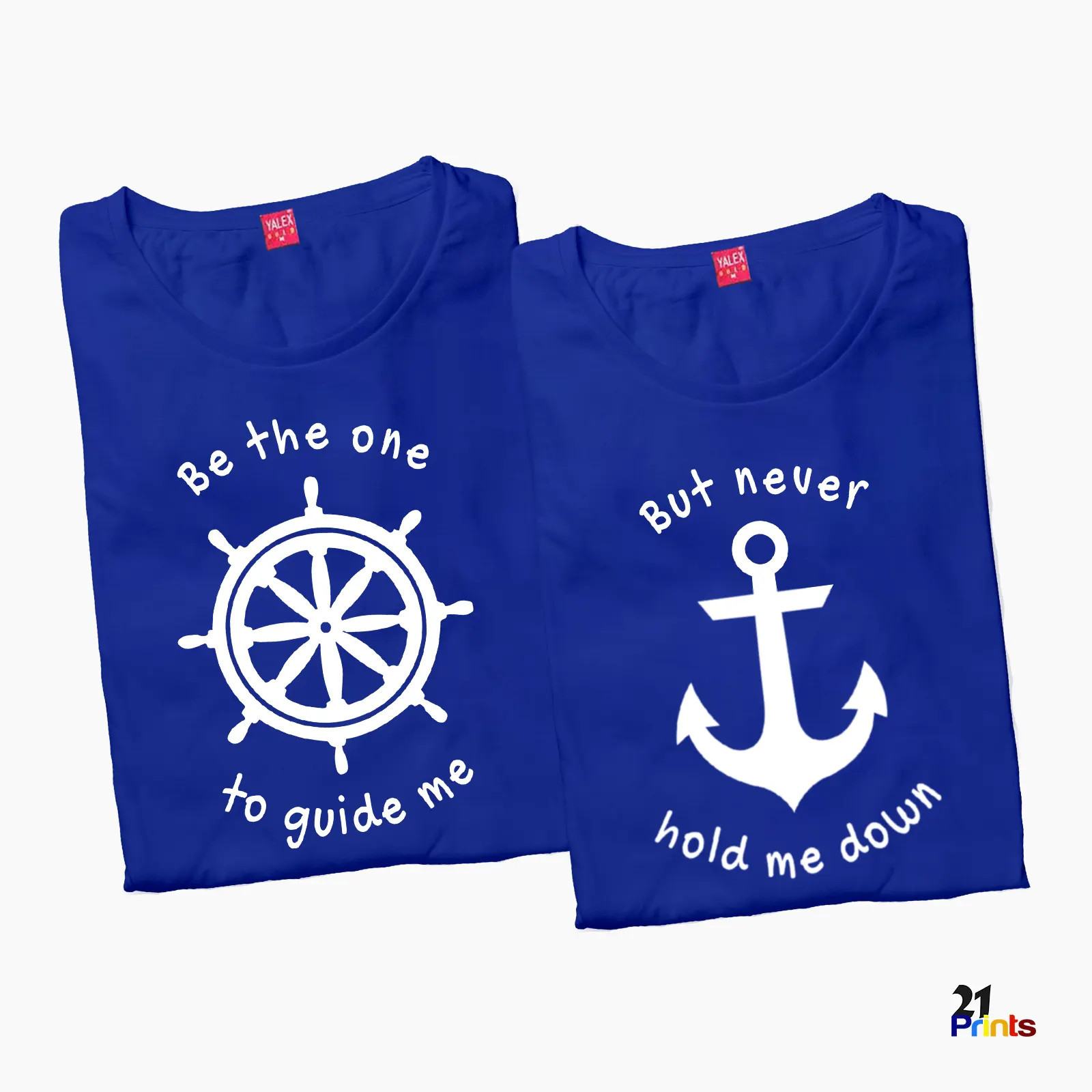 A meaningful couple shirt featuring a helm and anchor design with the quote “Be the one to guide me, but never hold me down”—perfect for couples who support and strengthen each other.