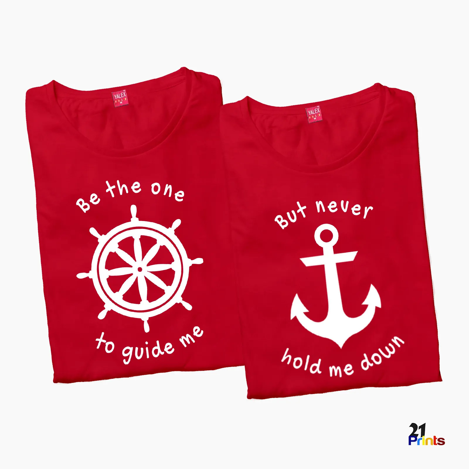 Express a love that balances freedom and support with our Be the one to guide me, but never hold me down Couple T-Shirt. This thoughtfully designed pair features a helm symbol for guidance and direction, and an anchor symbol for strength and stability—together paired with the heartfelt message: “Be the one to guide me, but never hold me down.”