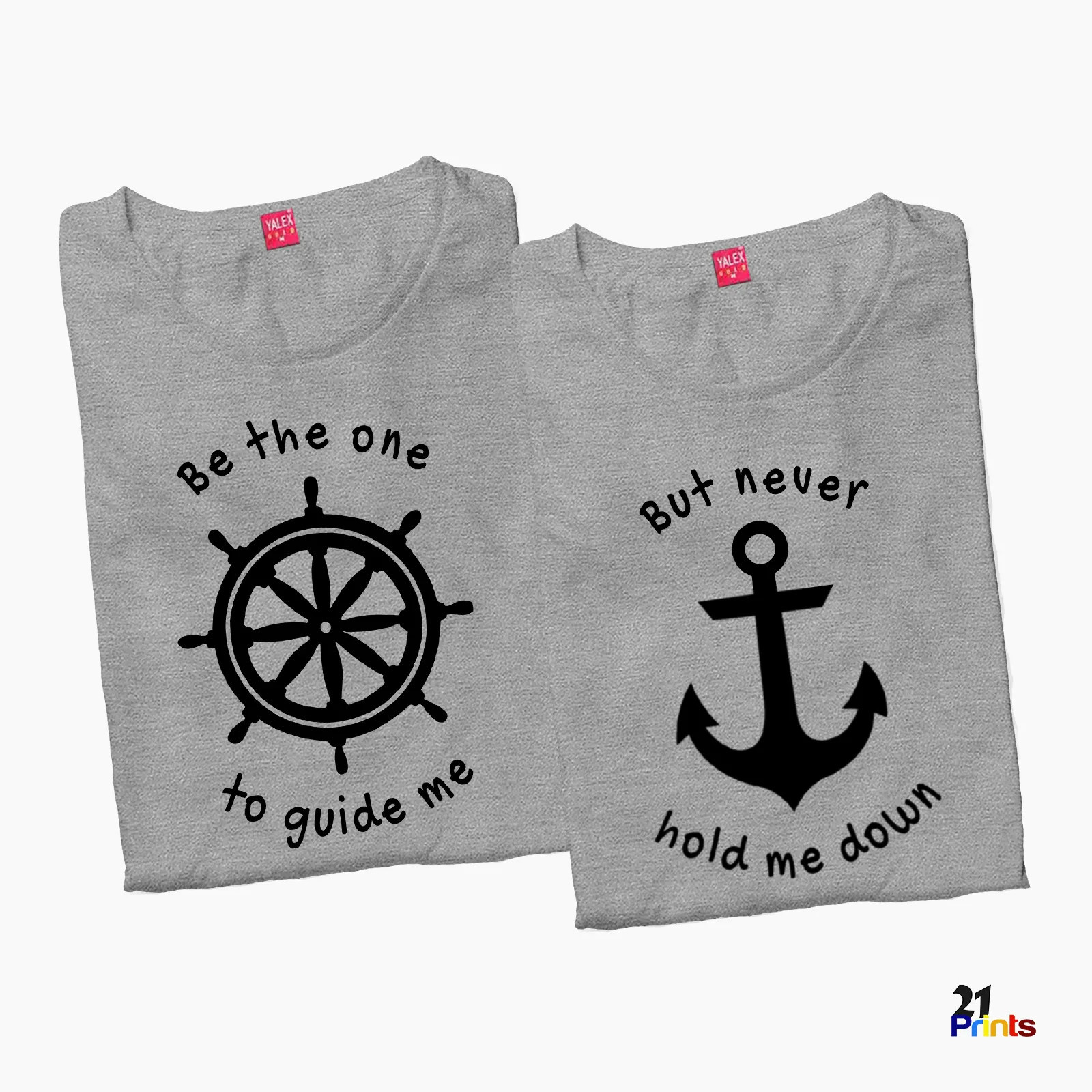 Express a love that balances freedom and support with our Be the one to guide me, but never hold me down Couple T-Shirt. This thoughtfully designed pair features a helm symbol for guidance and direction, and an anchor symbol for strength and stability—together paired with the heartfelt message: “Be the one to guide me, but never hold me down.”
