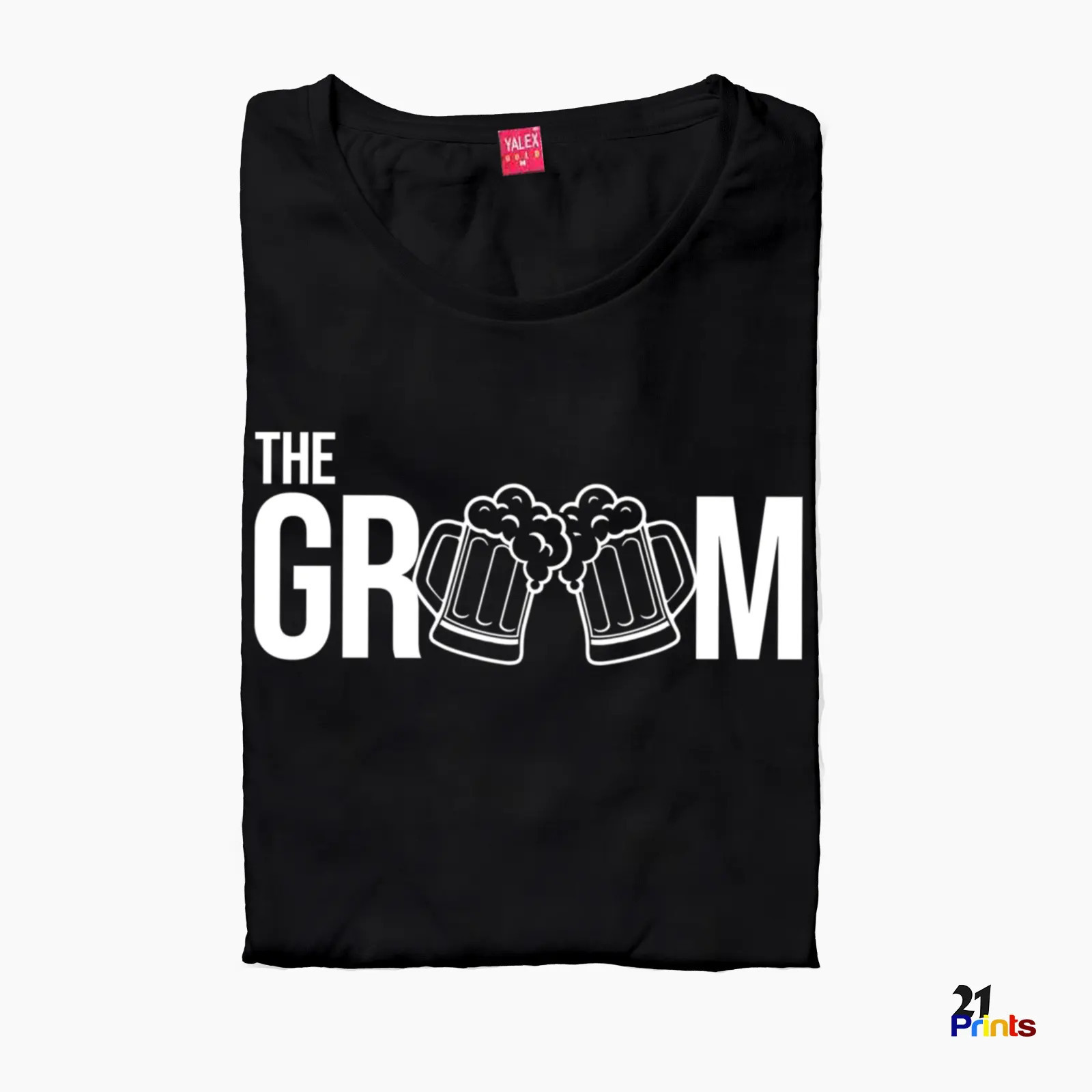 A fun matching T-shirt set for the groom and his squad, featuring beer mugs and bold typography. Perfect for bachelor parties, pre-wedding celebrations, and group photos.