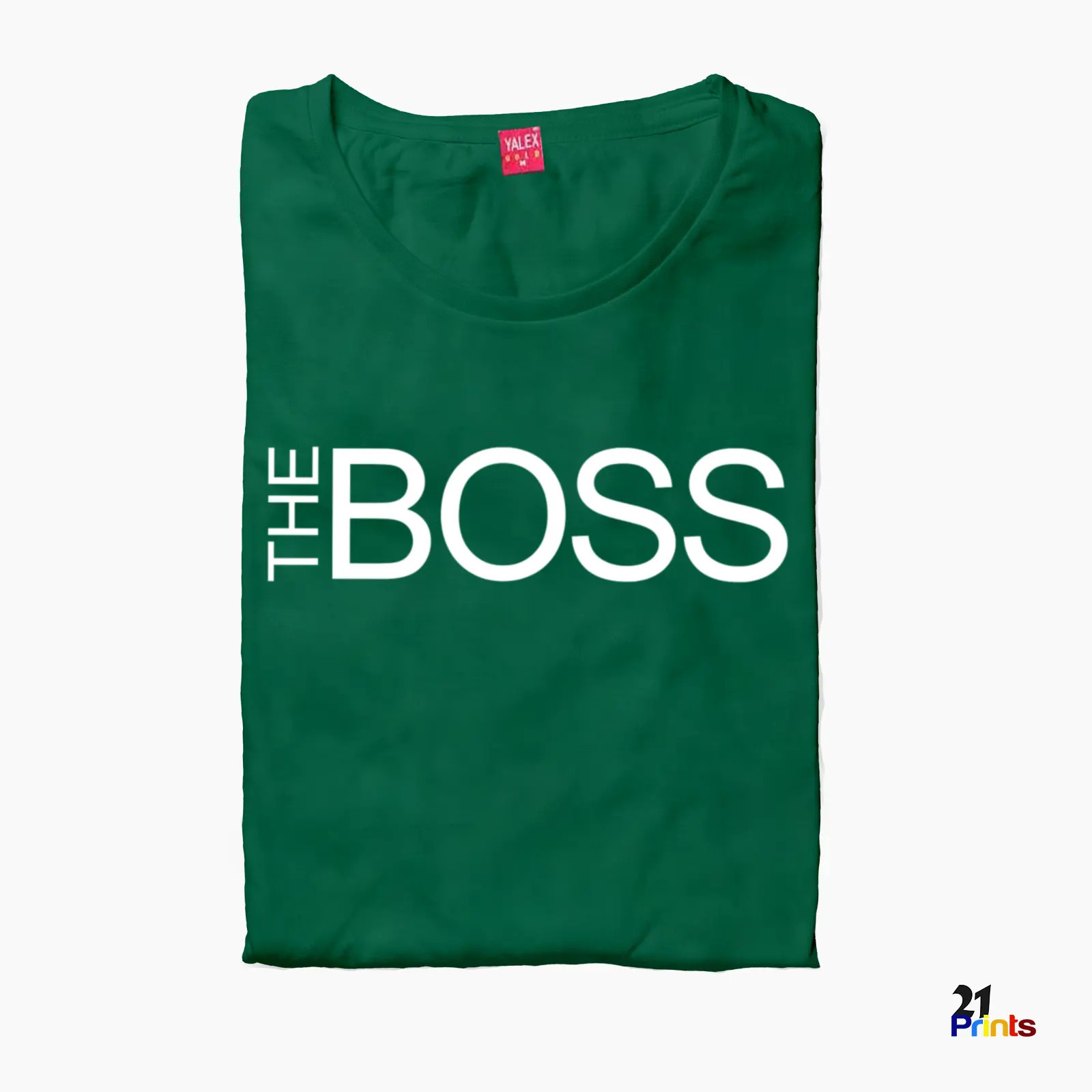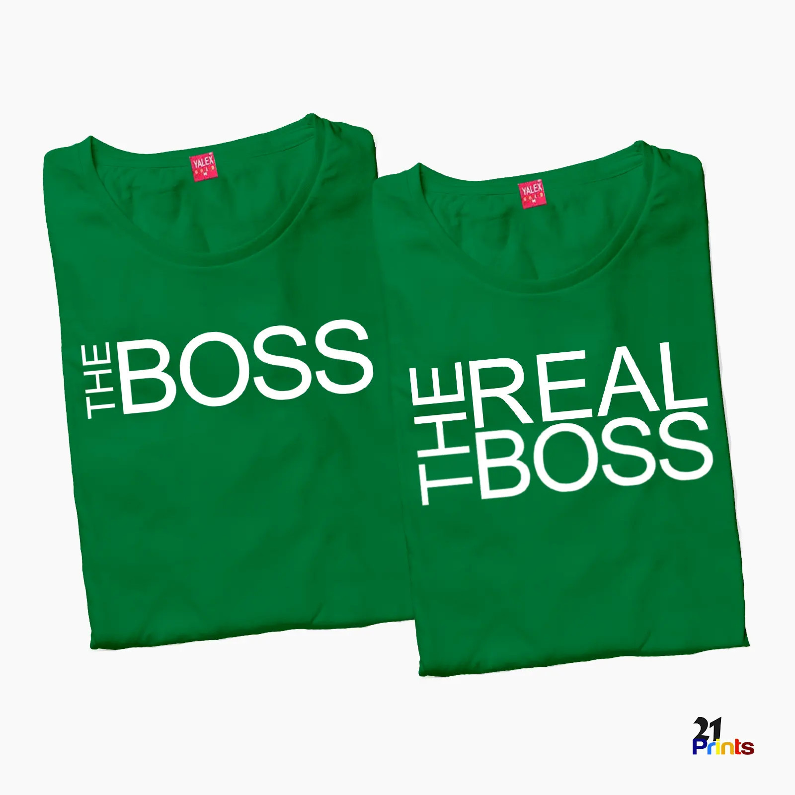 A fun and stylish matching T-shirt duo featuring bold “THE BOSS” and “THE REAL BOSS” prints—perfect for couples who love playful, coordinated outfits.